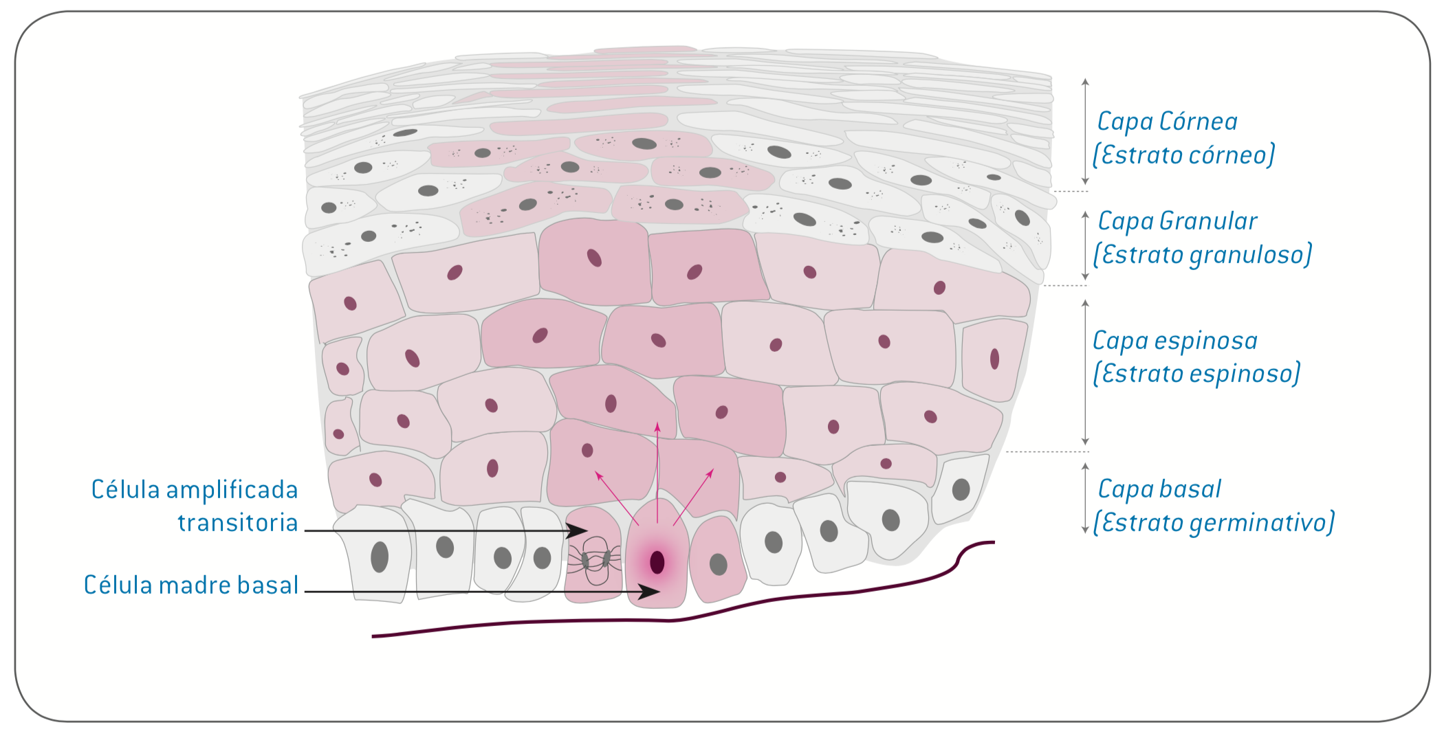 Enfoque en el estrato germinativo, almacén de células madre epidérmicas