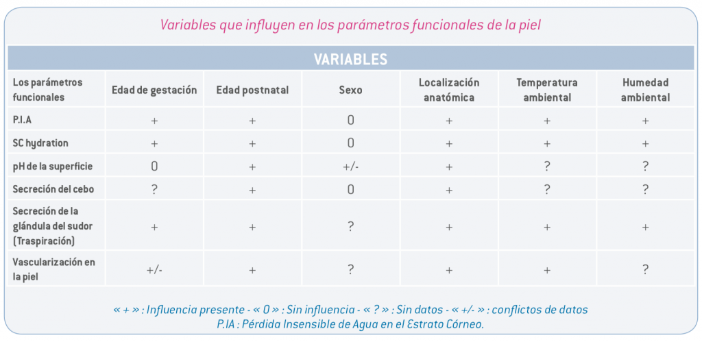 Sin embargo, no existe ninguna información acerca de la evolución de la epidermis entre el nacimiento y los 2 años respecto a: