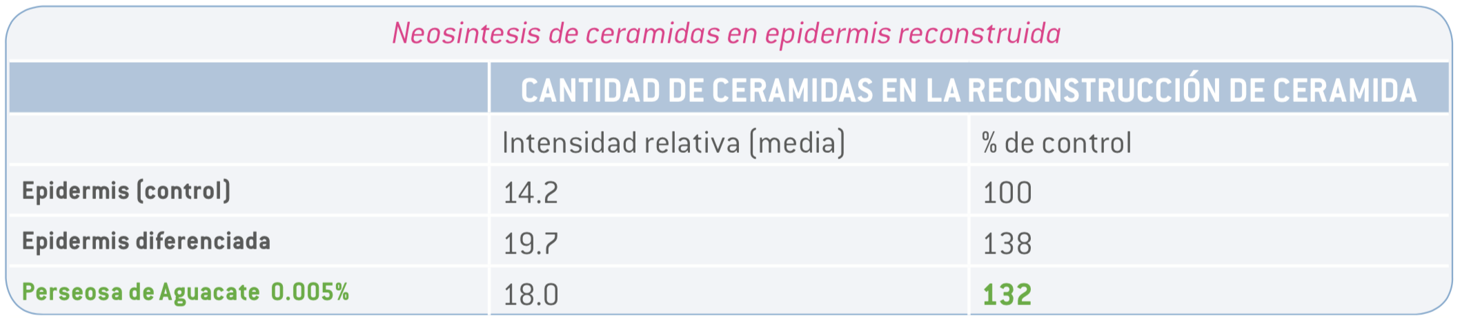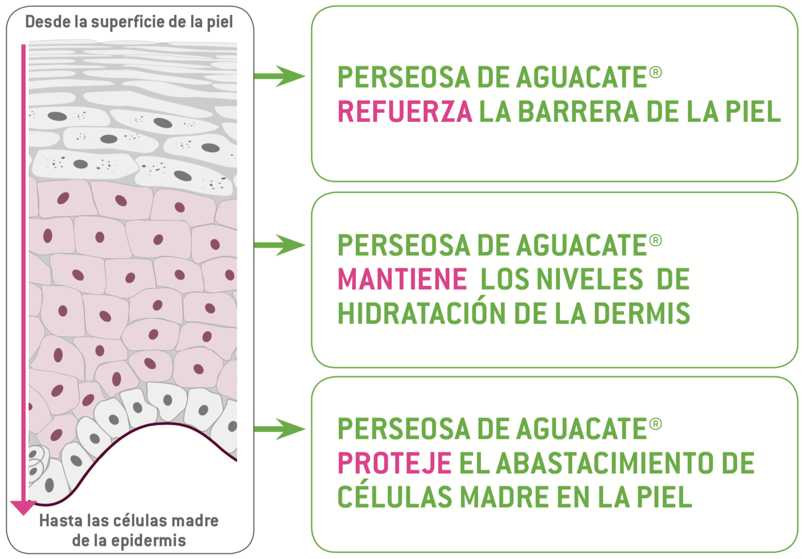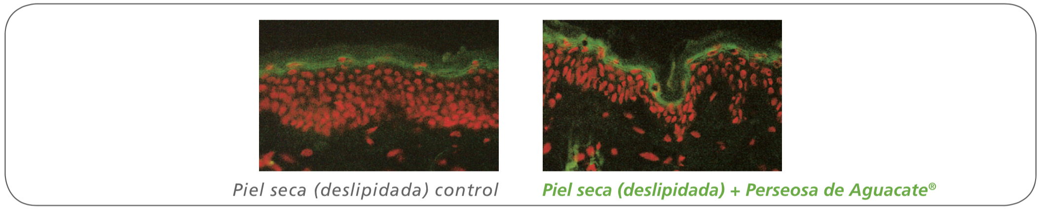 Perseosa de Aguacate<sup>® por lo tanto tiene un efecto positivo, ya que protege la potencia de las células madre basales y contribuye al mantenimiento de la integridad y el equilibrio de la epidermis.