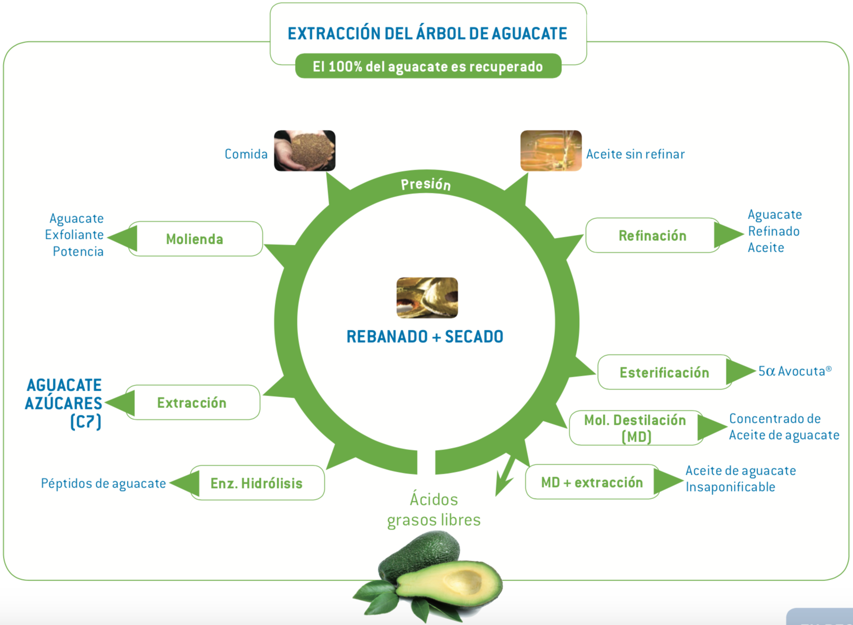 Presentamos aquí el ciclo de procesamiento del aguacate.