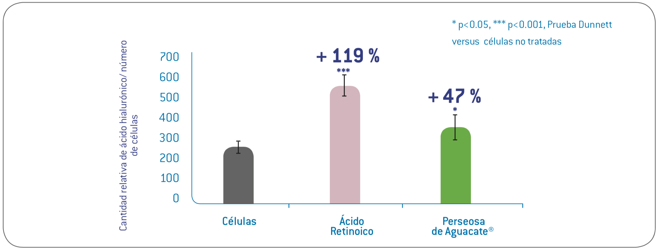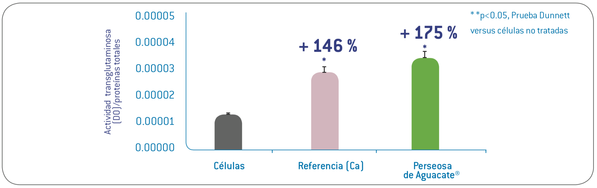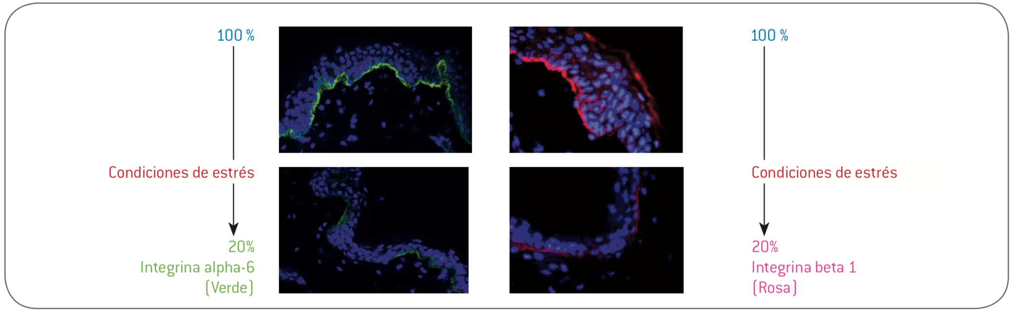 - Resultado : Frente a graves agresiones ambientales (UVA y UVB) y con la presencia de Perseosa de Aguacate<sup>®, el 80% de los marcadores de las células madre fueron conservados (comparados con 20%)