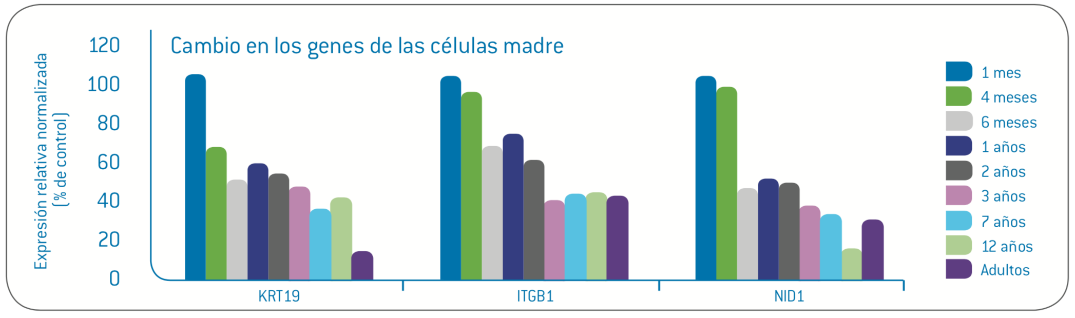Cambios en genes de las células madre basales/marcadores por edad en la presencia de Perseosa de Aguacate<sup>®