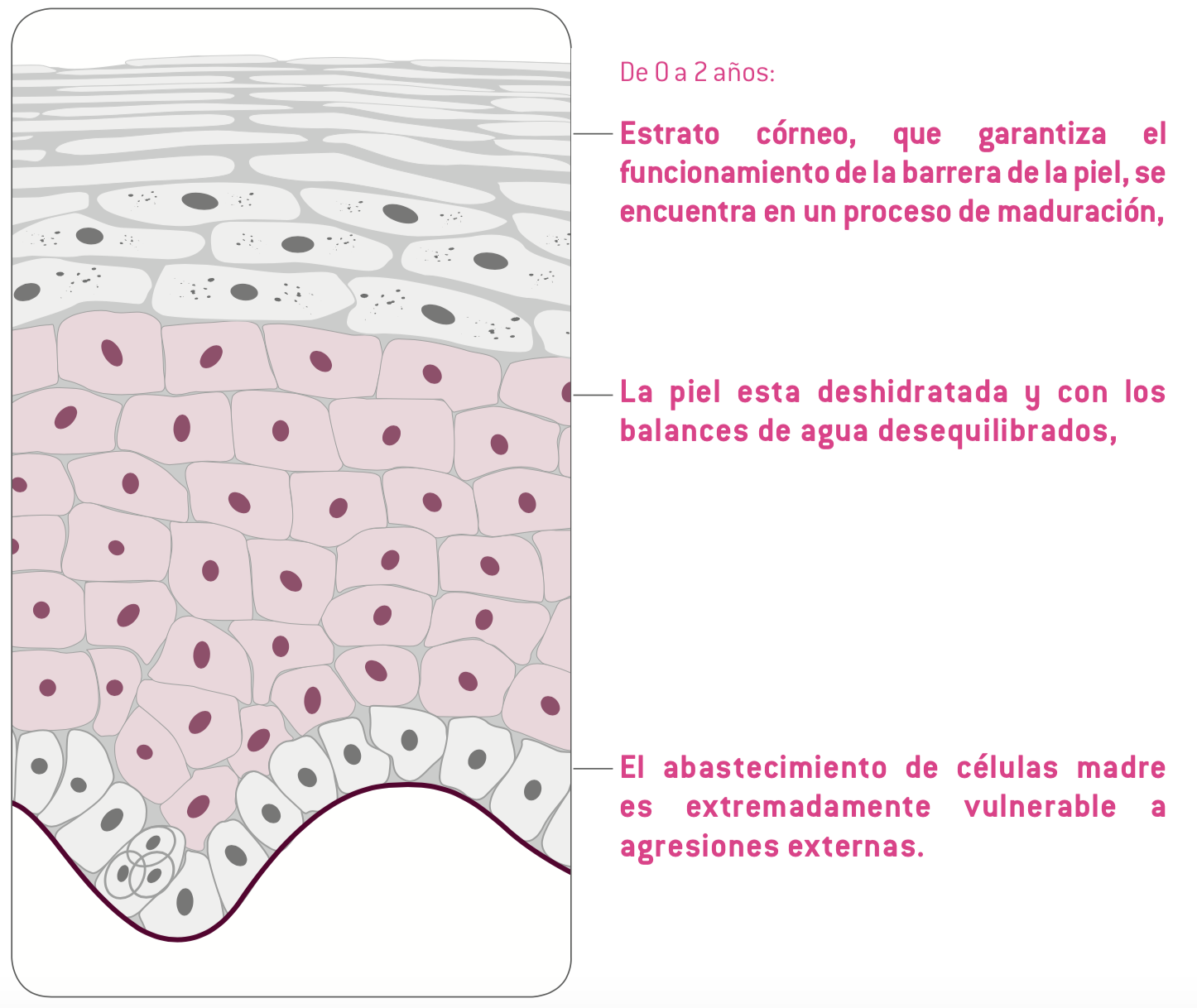 Grandes descubrimientos sobre la barrera de la piel, la hidratación, y las células madre epidérmicas, nos han permitido establecer la existencia de un periodo crítico en la piel de los bebés, entre el nacimiento y los 2 años de edad.